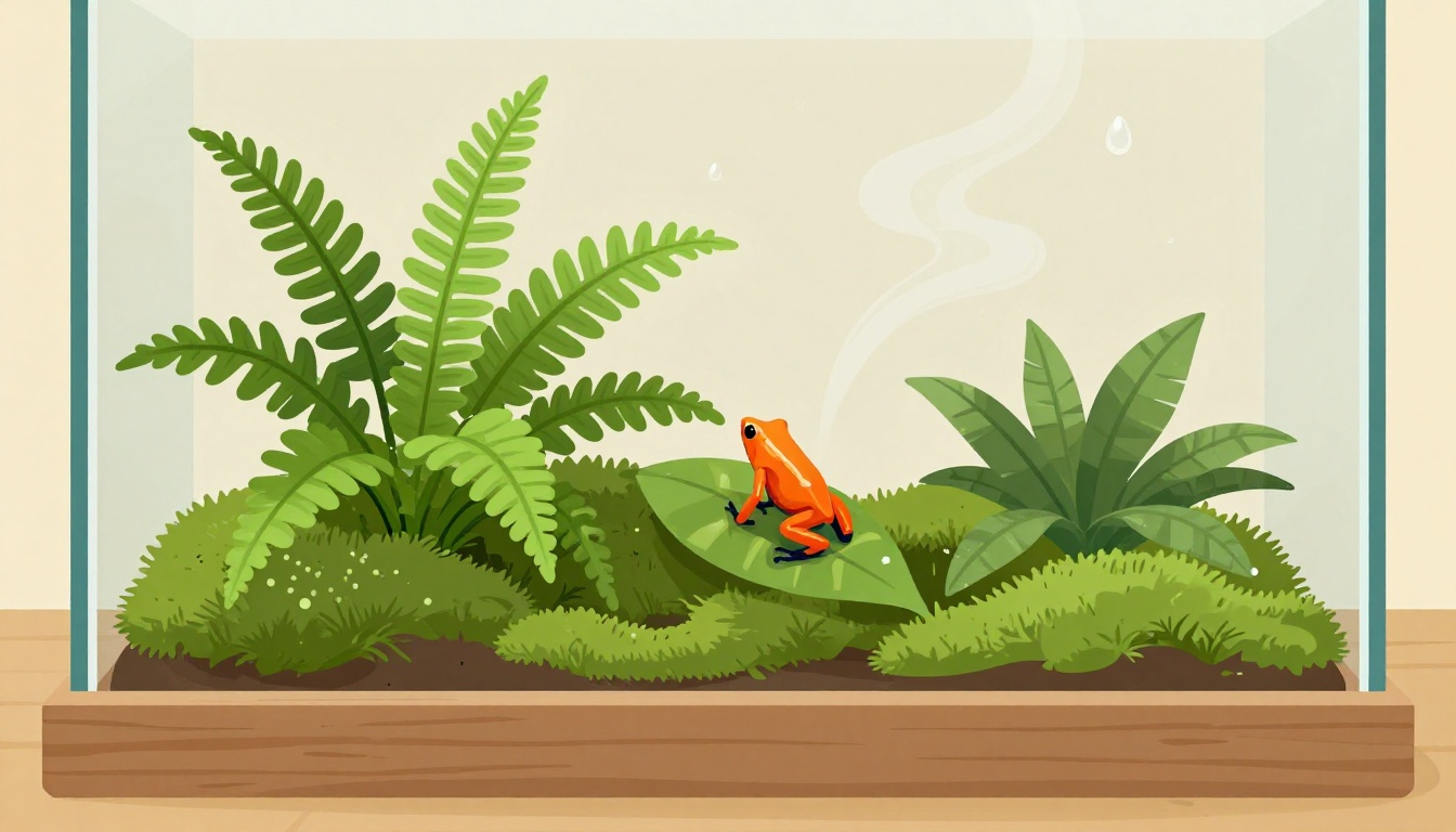 Pair wisely. Ferns crave 85%+. Moss hits 90%. Tree frogs want 80-95%. Mismatches hurt. Dry ferns brown. Wet moss rots if vents lack.